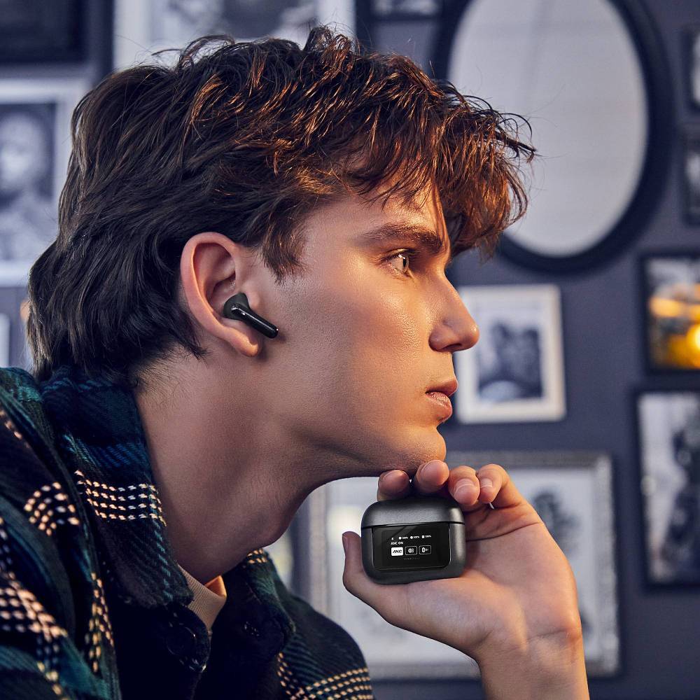 Auriculares True Wireless con tecnología Active Noise Cancelling: personaliza la configuración de sonido ambiente que prefieras en cada momento. Con Bluetooth 5.4 y True Wireless Stereo, reproduce tu música sin necesidad de cables durante sus 30 horas de autonomía. Su estuche de carga con pantalla te garantiza una experiencia de uso óptima sin usar tu smartphone.